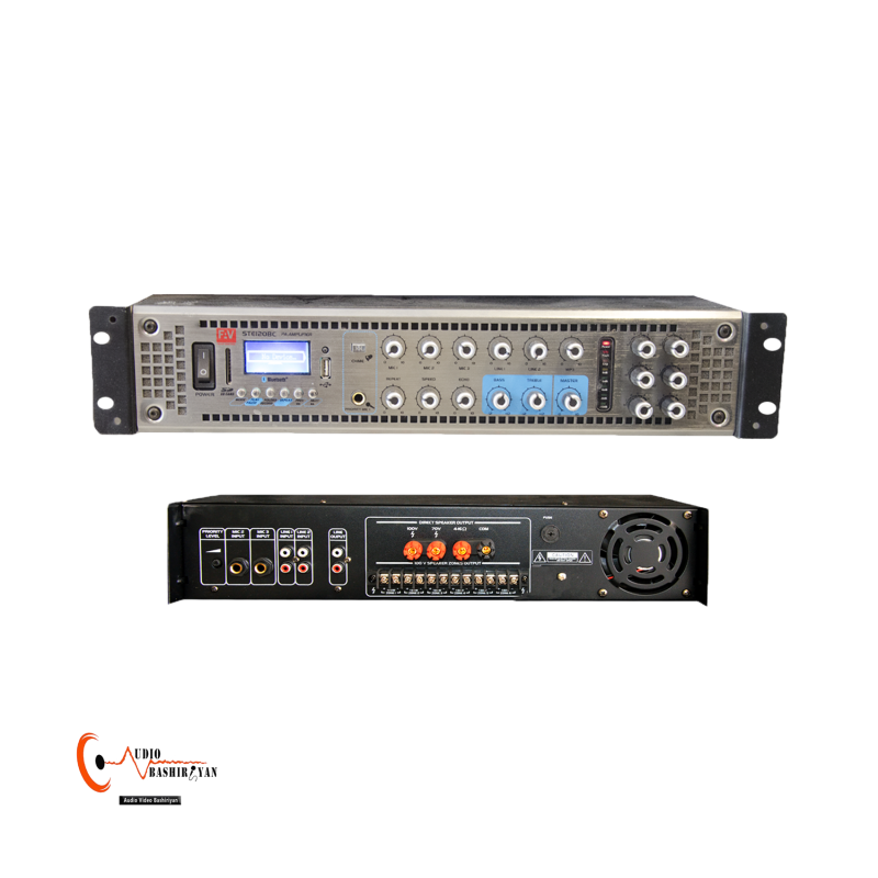 این آمپلی فایر FAV مدل STE-120؛ آمپلی فایر اهمی ولتی با 120 وات قدرت RMS؛ با طراحی زیبا می باشد. این دستگاه دارای امکاناتی همچون بلوتوث USB، پشتیبانی از SD کارت و همچنین دارای دو خروجی AUX مجزا و همچنین این آمپلی فایر تک کاناله بوده و دارای 6 لاین زون بندی است.