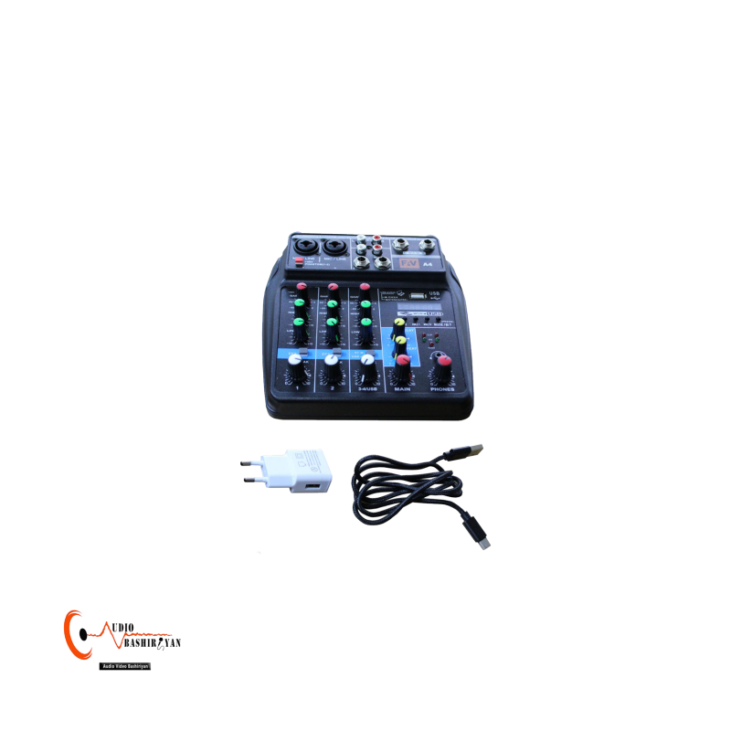 مینی میکسر مدل A4 در ابعاد کوچک برای استفاده های پرتابل و خانگی طراحی شده است. قابلیت اتصال دو میکروفن همزمان و دو ورودی آزاد جهت اتصال انواع سازها و همچنین خروجی فانتوم پاور +48 v جهت اتصال انواع میکروفن های استودیویی و کاندنسر را دارا می باشد. از قابلیت های دیگر این مینی میکسر می توان به افکت و ورودی USB و بلوتوث و خروجی هدفون و ضبط همزمان بر روی USB و قابلیت اتصال به کامپیوتر بوسیله کابل USB برای ضبط صدا و تامین برق مورد نیاز میکسر اشاره کرد.