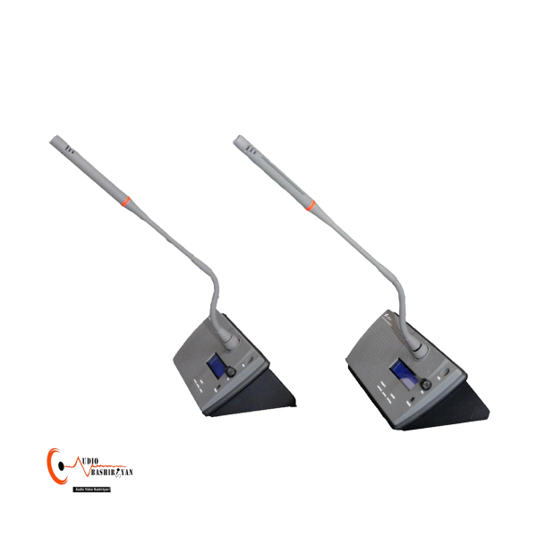 میکروفن و سیستم کنفرانس مدیا مدل MC-9166 C/D؛ مجهز به دو سیستم میکروفن رئیس و میکروفن شرکت کننده، دوربین دار (camera auto-tracking)، خازنی با کپسول array؛ قابلیت کنترل رای گیری و انتخاب توسط میکروفن رئیس