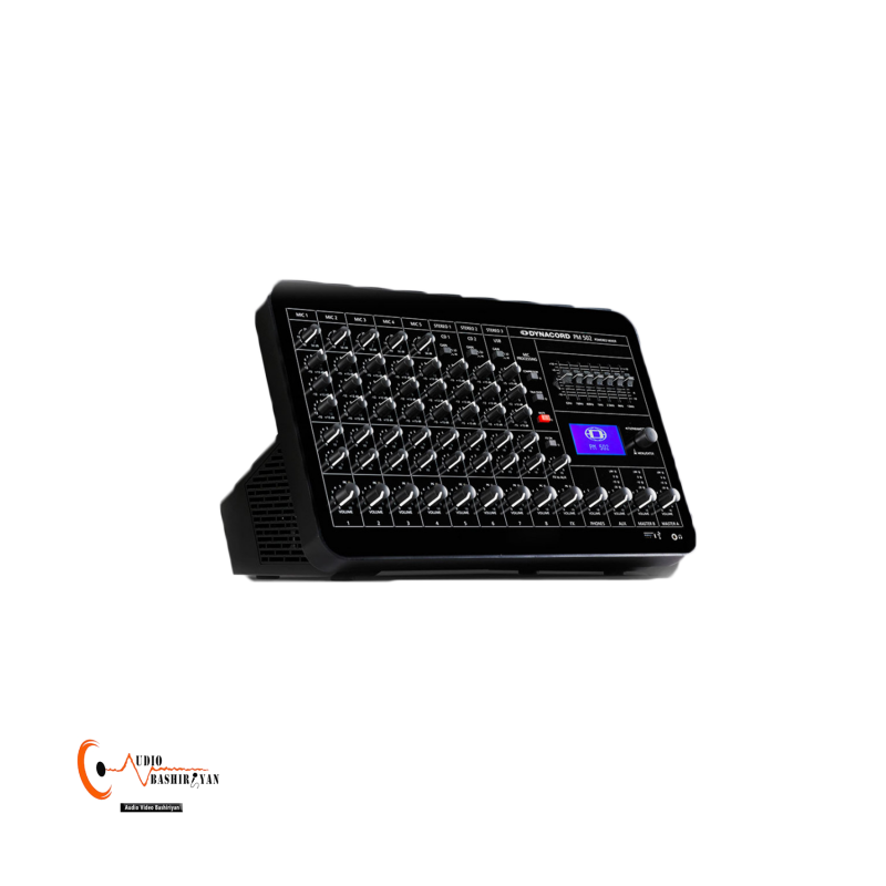 پاور میکسر دایناکورد PM 502 از کوچکترین محصولات پاور میکسر دایناکورد، دارای ۵ ورودی میکروفن است و توان خروجی انی محصول ۶۰۰*۲ وات می باسد. همچنین تعداد ۵+۳ کانال در این محصول تعبیه شده است که ۵ تا آن متعلق به خط ورودی میکروفن که به صورت بالانس شده است و ۳ خط ورودی استریو دیگر به صورت غیر بالانس است. وهمچنین دارای ۷ باند اکولایزر گرافیکی و توان خروجی آمپلی فایر داخلی این محصول در هر کانال ۴۵۰ وات واقعیبا امپدانس ۴ اهم است.  میزان برق مصرفی آن ۱۸۰ وات است و دارای رابط کاربری USB است.