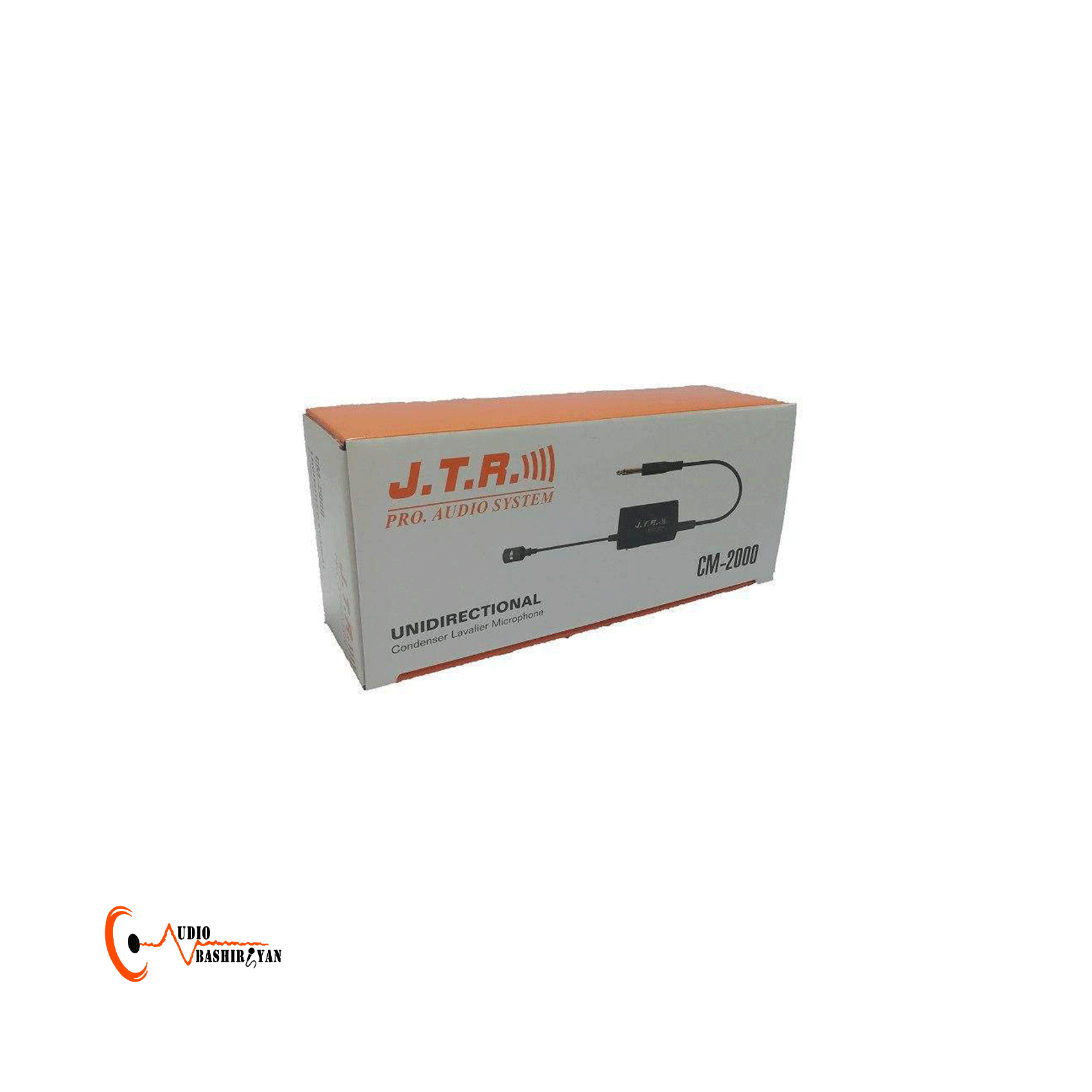 میکروفون باسیم یقه ای جی تی آر مدل JTR CM-2000 از محصولات برند معتبر JTR محسوب میشود. این میکروفن یقه ای از دسته میکروفنهای کندانسر میباشد که دارای کپسول از نوع خازنی جهت بالا رفتن حساسیت دریافت صدای سخنران و ادوات موسیقی میباشد. برای راهاندازی میکروفون یقه ای جی تی آر مدل CM-2000 از یک عدد باتری قلمی 1.5 ولتی استفاده میشود که در انتهای کابل 10 متری منبع تغذیه میباشد. اتصال میکروفن یقه ای JTR جهت ورودی آمپلی فایر از نوع فیش 6.5 میلی متری بنون با روکش طلا اندود میباشد و همچنین کابل ارتباطی 10 متری تمام مس دارای سطح مقطع بیشتری میباشد تا علاوه بر بالا رفتن مقاومت کابل میکروفن یقه ای، سیگنال را به راحتی و بدون نویز انتقال دهد. دهنی میکروفن یقه ای جی تی آر JTR CM-2000 که به همراه کلیپس به لباس و یا ادوات موسیقی متصل میشود نسبت به سایر میکروفنهای یقه ای موجود در بازار تفاوت چشمگیری دارد و آن ایجاد 4 جهت در دهنی میکروفن یقه ای میباشد تا سیگنال را به راحتی بتواند از 4 سمت با قدرت بالا دریافت کند. برای ساخت دهنی میکروفن یقه ای JTR CM-2000 از آلیاژ مقاوم استفاده شده است تا به راحتی بتواند از میکروفن داخلی محافظت کند و در برابر ضربه و فشار مقاومت بالایی داشته باشد.