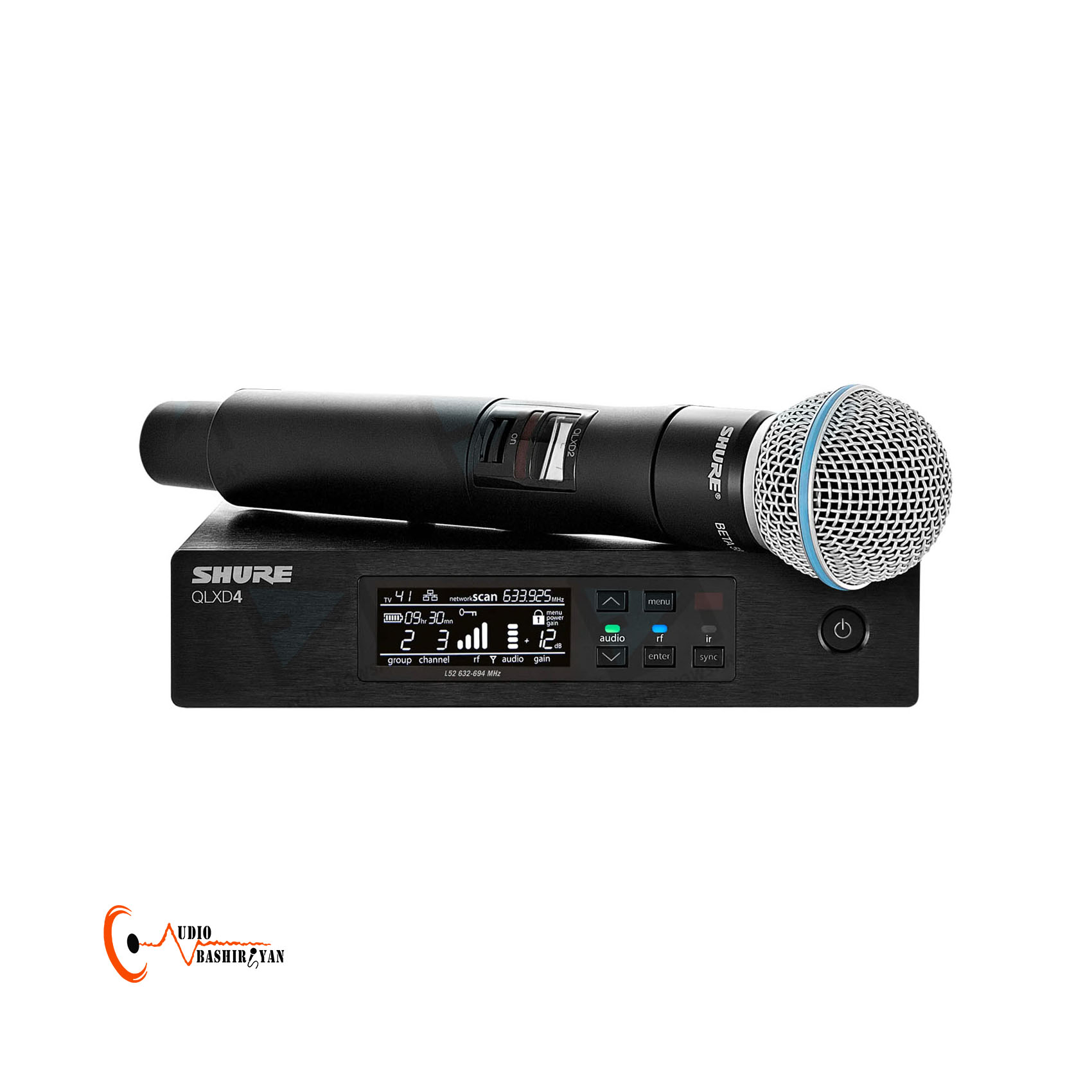 - مشخصات فنی: نوع میکروفون : دستی با کپسول داینامیک نوع کاربری : وکال / اینسترومنت الگوی نمونه برداری : سوپرکاردیوید کپسول ست شده : BETA58 محدوده پاسخ فرکانسی : 50 تا 16000 هرتز حساسیت : 51.5- دسیبل مقاومت : 290 اهم درگاه ارتباطی ریسیور : XLR و پورت اترنت باند ارتباطی : VHF, UHF, 900 MHz ISM برد موثر : 150 متر