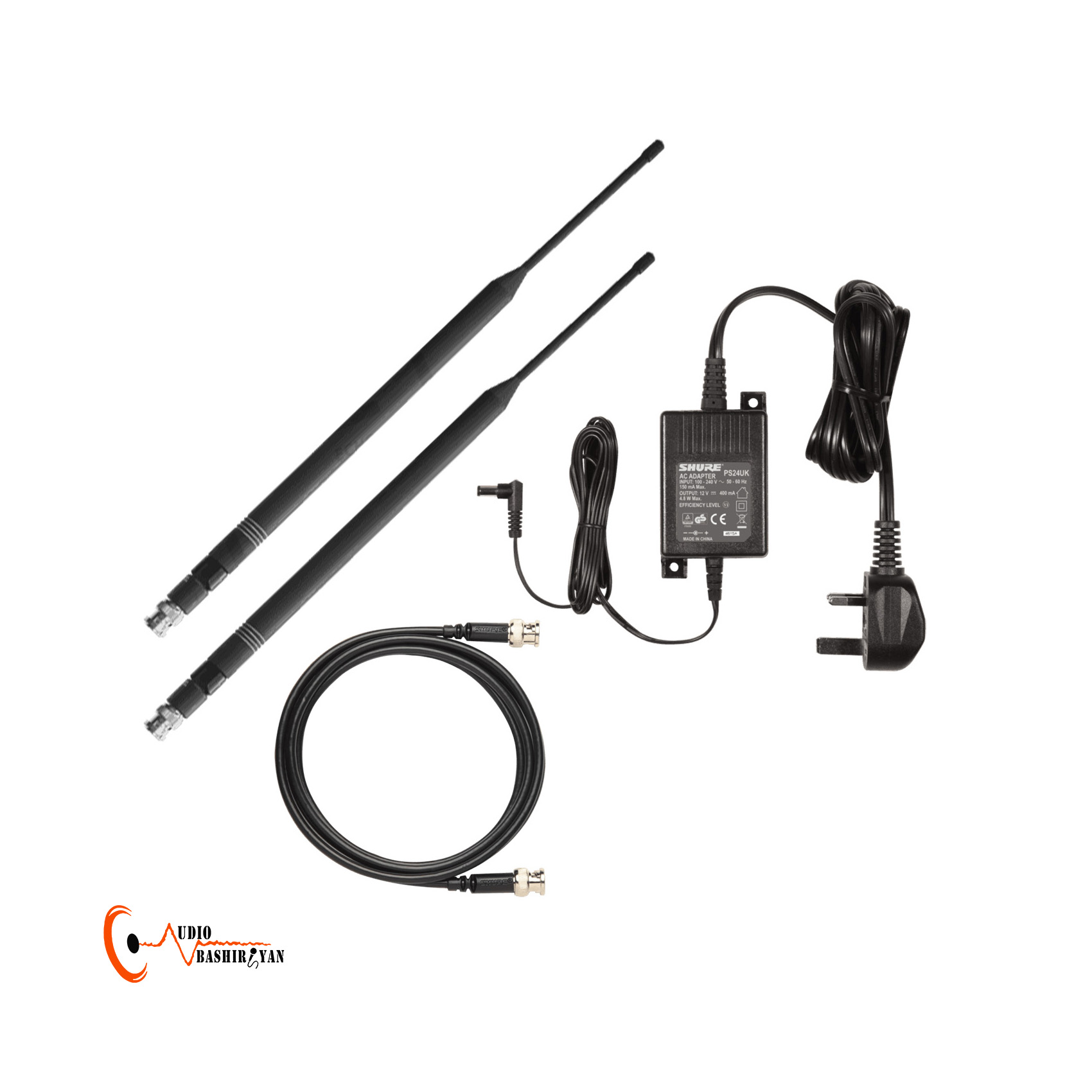 - اقلام همراه: آداپتور 2 باطری قلمی گلویی میکروفن کیف چرمی اتصالات رک مونت دفترچه راهنما