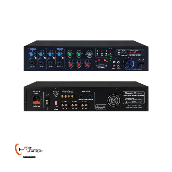 آمپلی فایر پابلیک تندرTHUNDERمدل TE-460؛ 460 وات قدرت، عملکرد اهمی-ولتی، 3 زون ، اکوی دیجیتال با کنترل های تاخیر و تکرار
