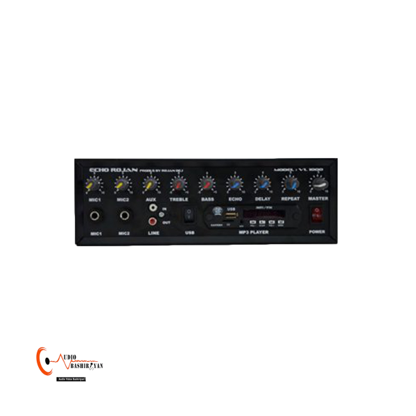 اکو آمپلی فایر رومیزی (اهمی– ولتی) VL1000 دو ورودی میکروفون با ولوم کنترل صدای مجزا دارد ورودیline in و خروجی line out جهت اتصال به دستگاه های دیگر مانند دوربین است. این اکو قابلیت اتصال برق 12 ولتی (برق ماشین) و همچنین قابلیت پخش و ضبط صدا به صورت mp3 و ذخیره ساری در SD و USB رادیو FM و بلوتوث (در مدل هایی که این قابلیت را دارند) را دارد. آمپلی فایر رومیزی VL1000 قابلیت اتصال همزمان به بلندگوهای پیجینگ دار و بلندگوهای اهمی را دارد و قدرت خروجی صدا 70 وات واقعی پیش رنک chime و آژیر و ملودی میکروفن بی سیم (در مدل هایی که این قابلیت را دارند) را داراست. شما می توانید به یکی از روش های حضوری یا غیر حضوری این محصول را در فروشگاه تجهیزات صوتی بشیریان در اهواز بصورت تک و عمده درخواست و دریافت کنید.