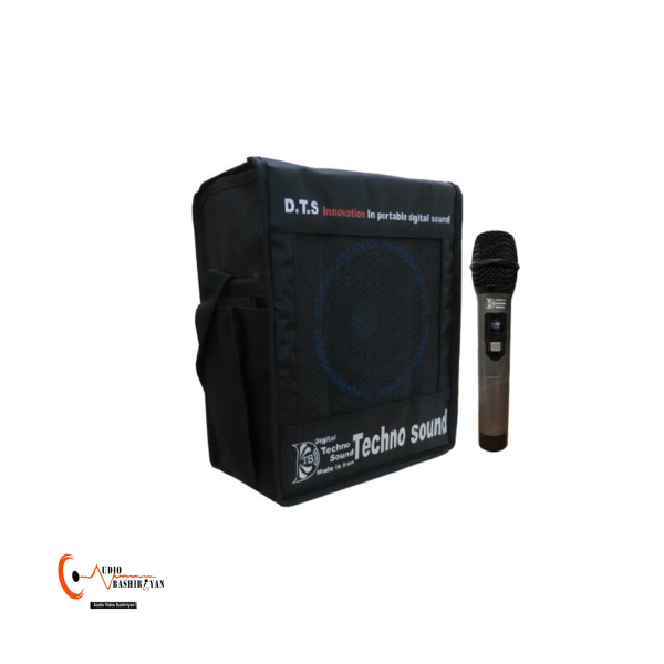 اکو شارژی تکنوسوند مدل TS100 سایز 6 اینچ وزن کمی داشته و بسیار سبک است و شامل دو ورودی میکروفون باسیم و 1 ورودی لاین، دارای درگاه USB و SD CARD سیستم پخش می باشد. این اکو با مشخصاتی که دارد مناسب برای مدارس، کنفرانس ها، سخنرانی ها، اردوها و برنامه های مذهبی می باشد.